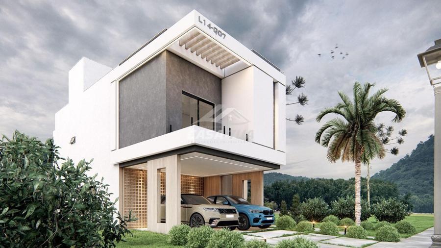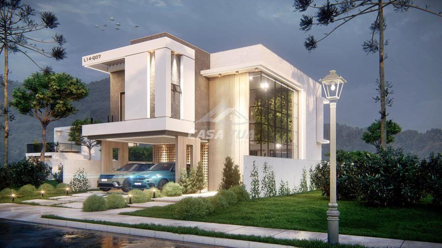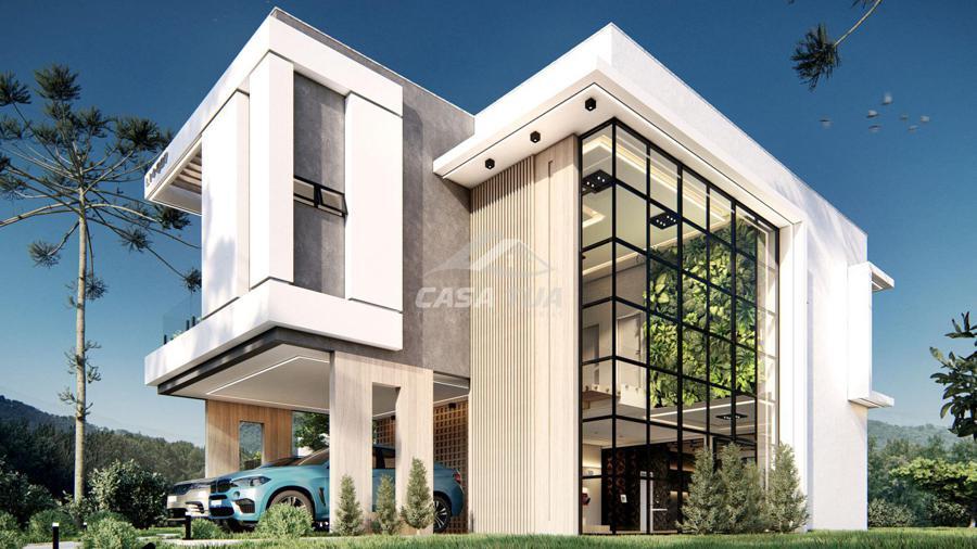 Linda casa Contemporânea, rica em detalhes, onde em conjunto com as cores quentes proporcionam