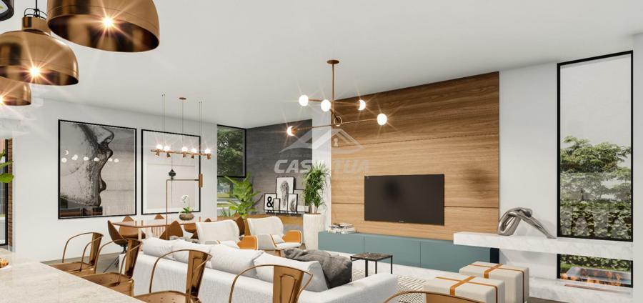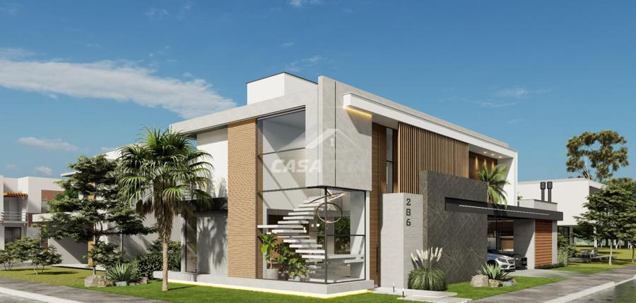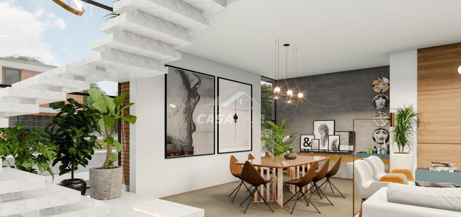 Com um visual despojado, esta bela casa traz contraste entre cores e texturas, detalhes em LED e linhas retas o que confere a ela um ar moderno e imponente. Conta também com amplas esquadrias estrategicamente posicionadas para trazer o máximo de luz natural ao ambiente e garantir belas visuais sem comprometer a privacidade.